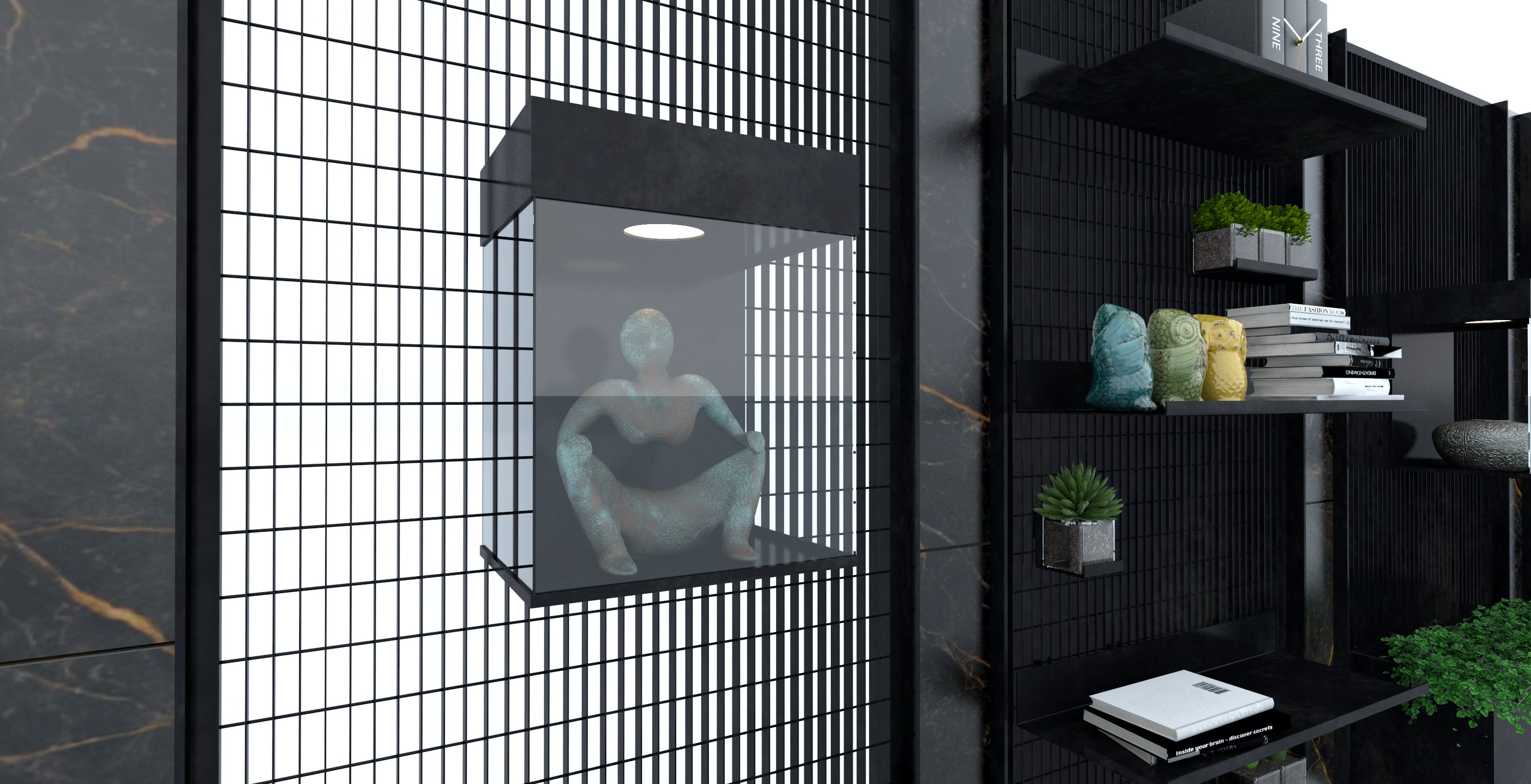 Kef Kef è proprio questo. Come tutta la serie KE-FER, gode di massima versatilità. Grazie agli accessori coordinati, questi pannelli ti permettono di organizzare gli spazi come meglio credi, senza mai compromettere lo scopo di Kef Kef: quello di mostrare. Infatti proprio per questo Kef Kef si presta molto all’installazione in attività commerciali. Il disegno dei pannelli può essere scelto, realizzato quindi su misura. Su misura si possono avere anche ulteriori accessori se non presenti nel catalogo. Con la progettazione ad hoc possiamo rivestire con questa parete attrezzata anche una superficie irregolare.