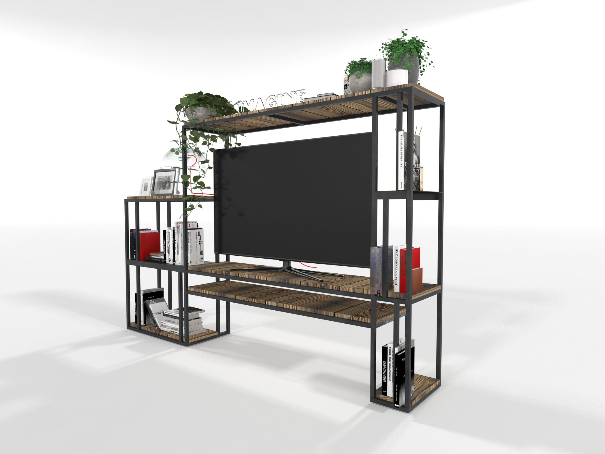 Tubolare in ferro con sezione quadra. Saldature a vista. Finitura satinata opaca. Legno di abete fiammato e rusticato ad arte. Design con doppio montante nella struttura. Queste sono le caratteristiche principali della Collezione UPP, dallo spiccato gusto industrial e chic, perché orientata al confort funzionale. Il mobile TV nella combinazione proposta può svolgere il compito di parete attrezzata, con spazio per soundbar, decoder, bluray e consolle giochi. Le strutture librerie sono personalizzabili anche con ante, sia in metallo che legno. Come ogni nostro complemento, anche il Mobile TV UPP può essere realizzato in qualsiasi variate su esigenza del cliente, grazie alla nostra formula Design + Artigianato.
